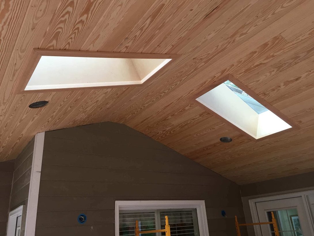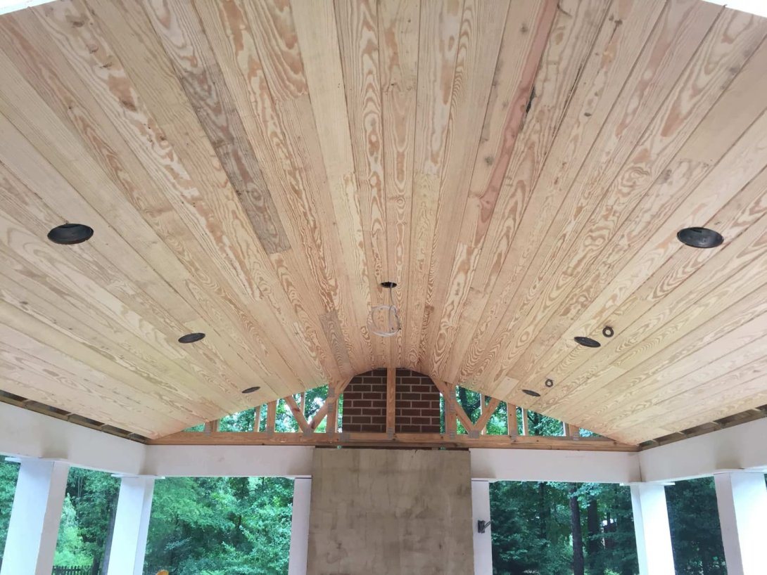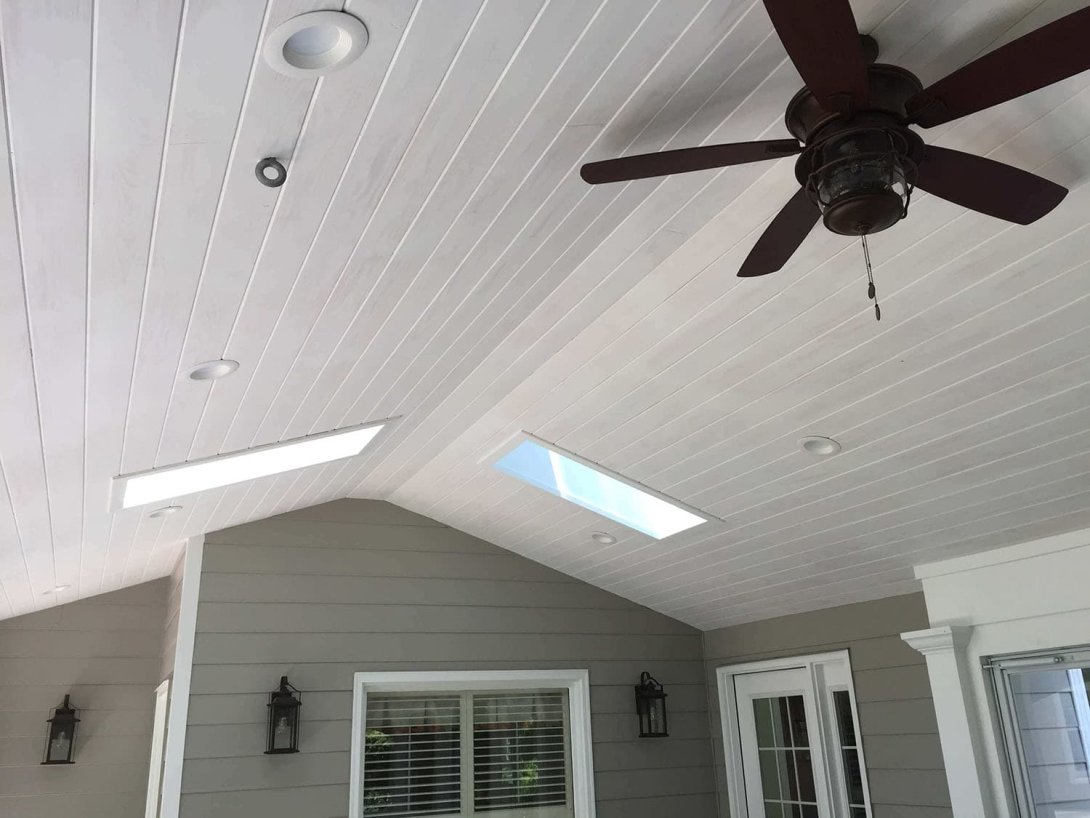 The porch itself is defined by its graceful and expansive arched screen openings, which lend a classic elegance to the structure while offering panoramic backyard views. Inside, the soaring vaulted ceiling is finished in a clean, bright white and features two large skylights, creating an incredibly airy and light-filled atmosphere. A new adjoining deck provides the perfect space for grilling, completing this masterful blend of stately architecture and comfortable, all-season outdoor living.