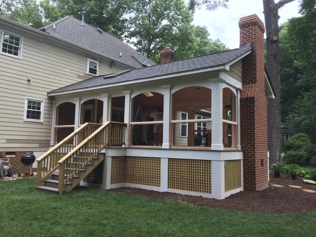 Stately Screened Porch with Masonry Fireplace