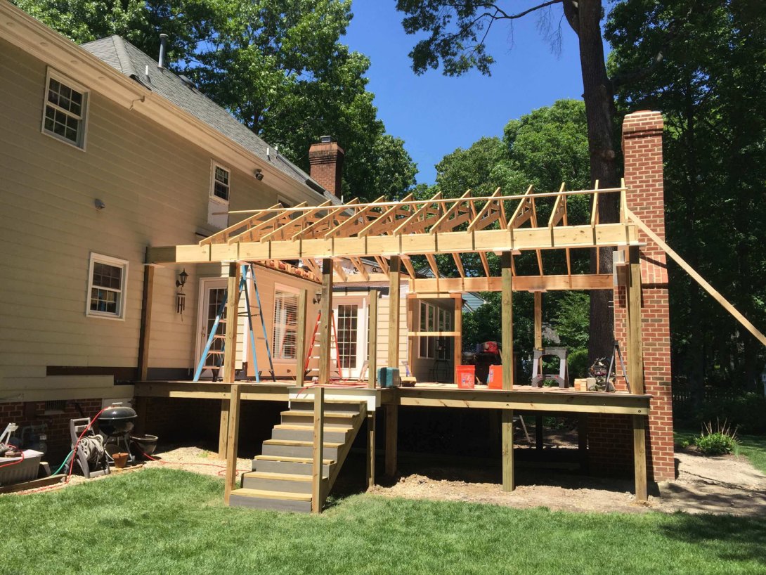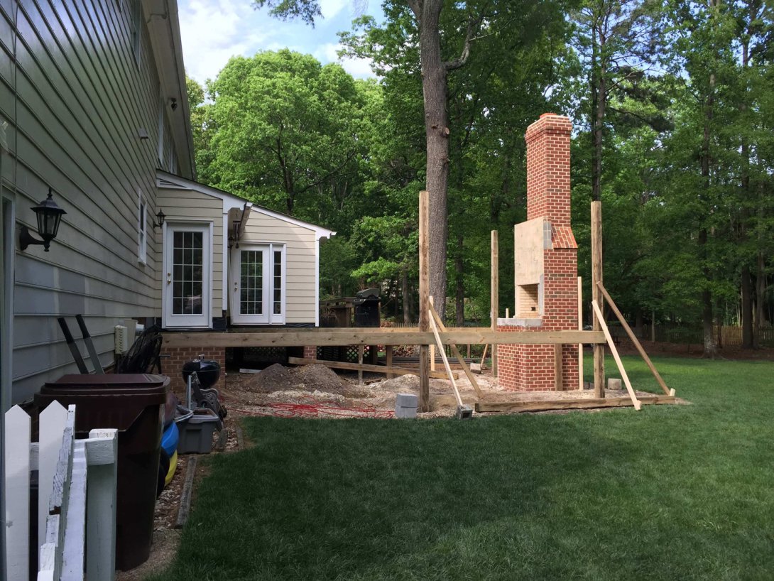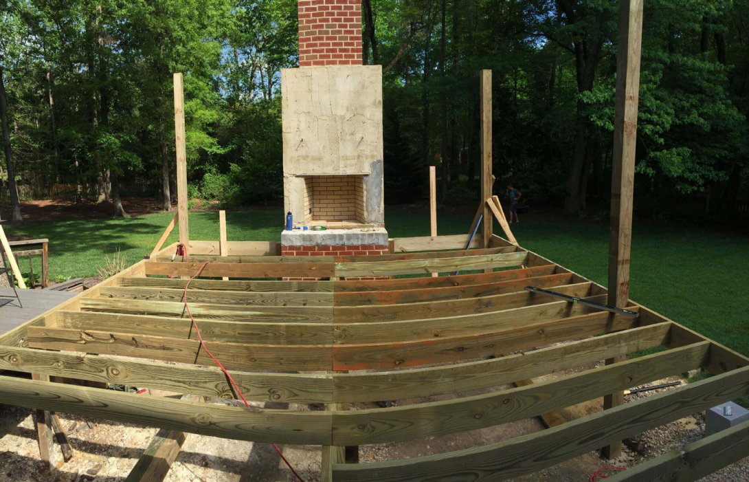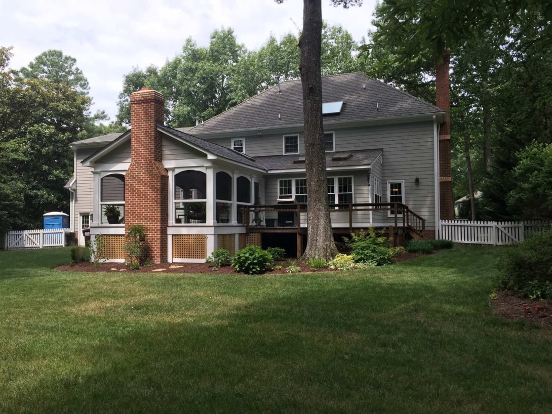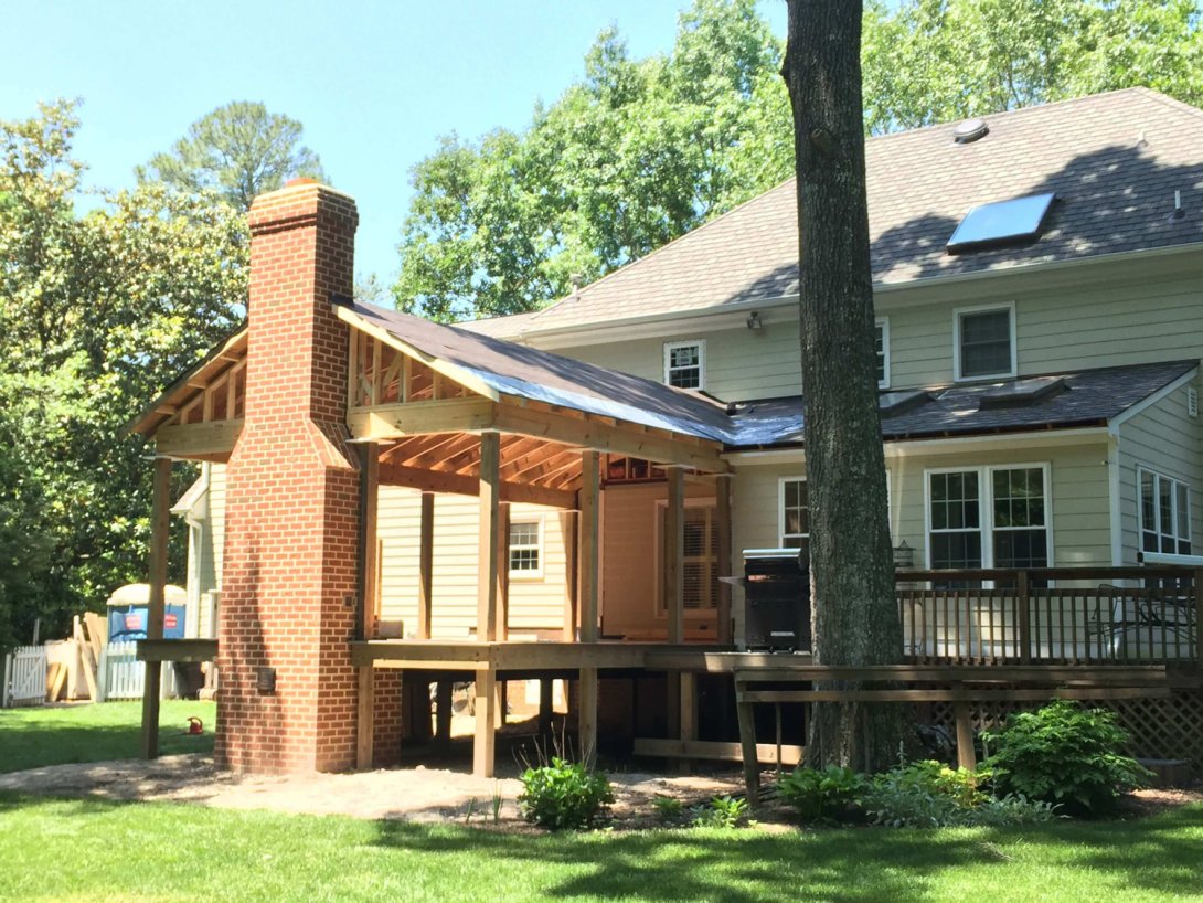 This project is the ground-up construction of a premier screened porch and deck, designed to be the ultimate outdoor living room. The undeniable heart of the new space is a grand, wood-burning masonry fireplace, custom-built from the foundation up and clad in rustic stacked stone for a powerful focal point.