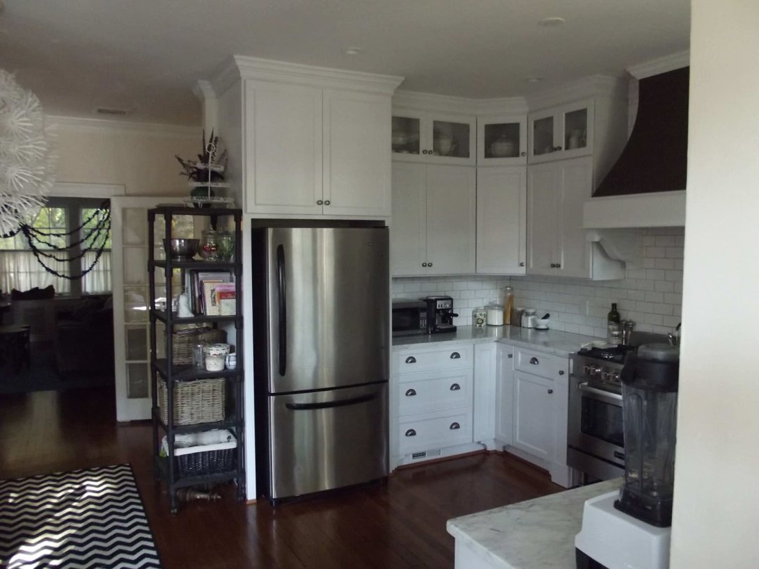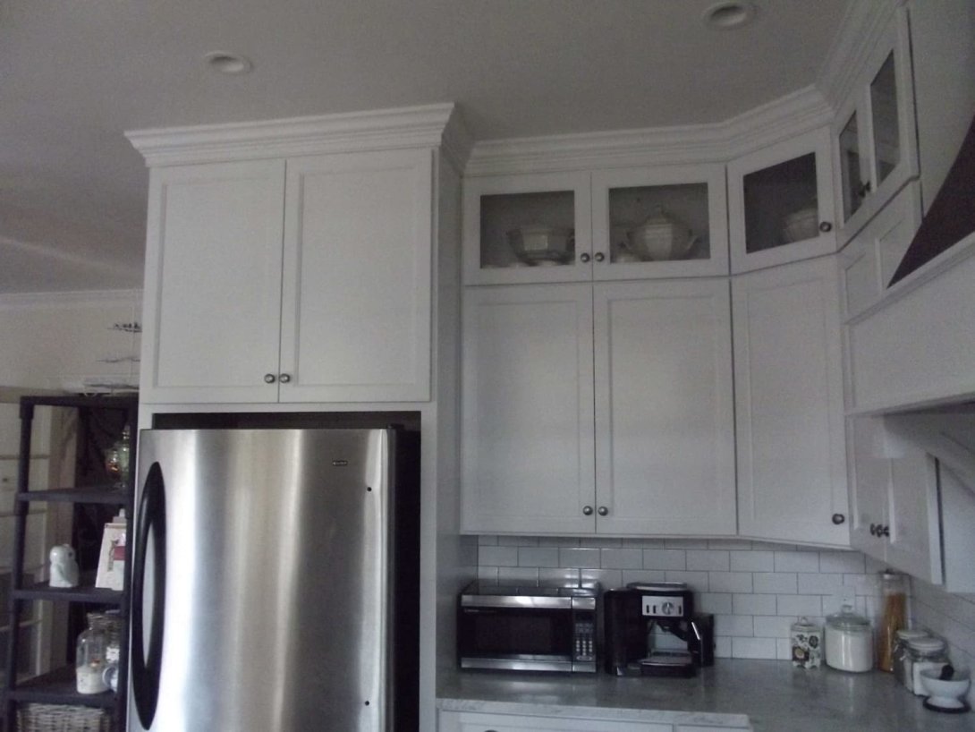 This project showcases a timeless kitchen renovation that masterfully balances classic design with contemporary functionality. The space is defined by crisp, white Shaker-style cabinetry that extends to the ceiling, finished with elegant crown molding for a custom, built-in feel. Glass-front upper cabinets offer a space for display, adding depth and personality to the design.