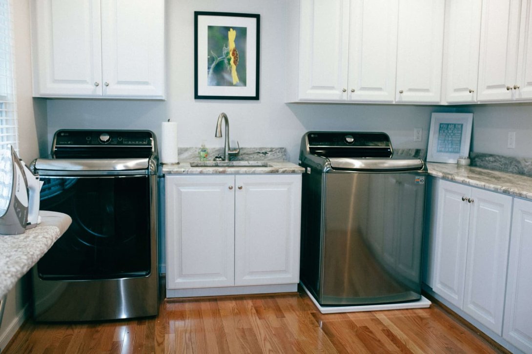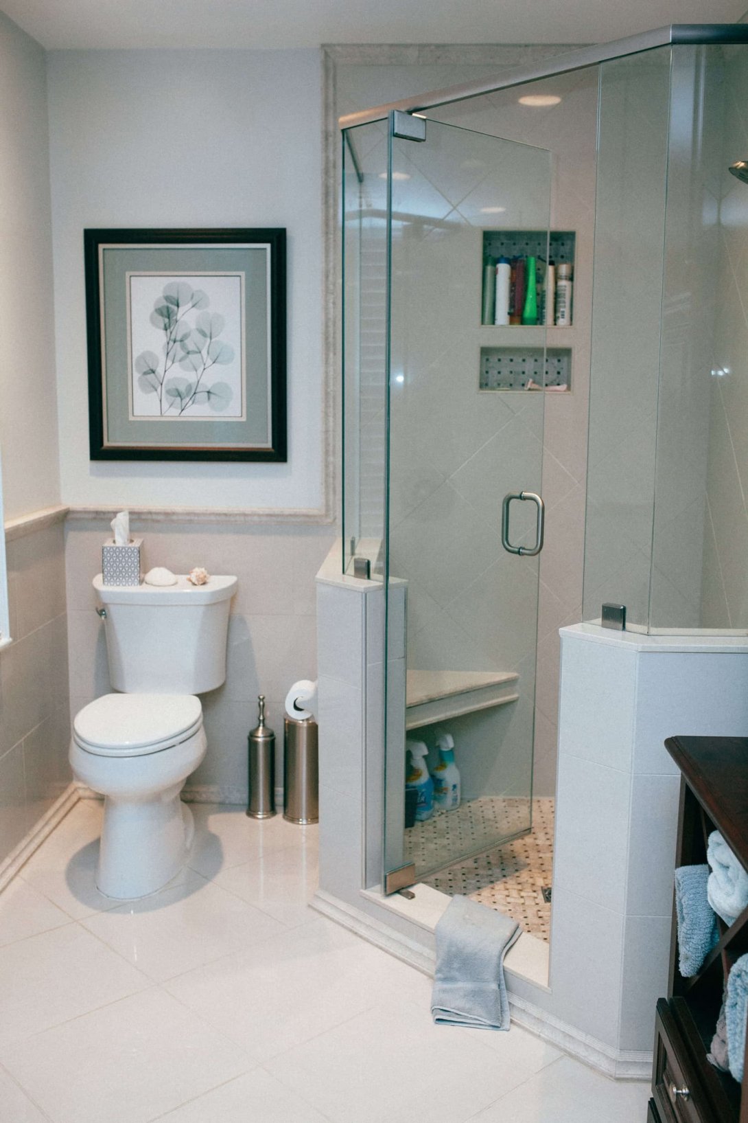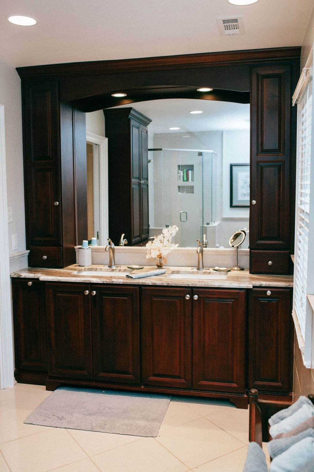 Luxury continues in the primary suite, which boasts a stately dark wood double vanity and a spacious custom glass shower. A bright and highly functional laundry room was also created to streamline daily routines. The transformation extends outdoors to a new paver patio with integrated stone seating walls, perfect for entertaining. Every detail was meticulously executed to create a truly cohesive and sophisticated living environment.