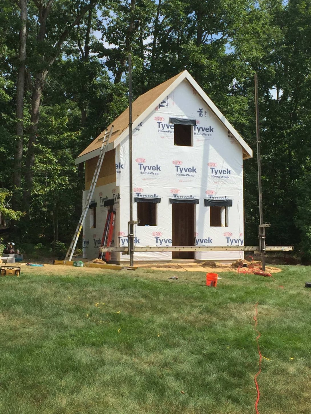 This project elevates the 'she shed' concept into a custom-designed and beautifully crafted personal retreat. The structure was built from the ground up to maximize its small footprint with a dramatic, high-volume interior. Inside, a soaring vaulted ceiling finished in crisp white shiplap creates an incredibly open and airy atmosphere, flooded with natural light from high windows.