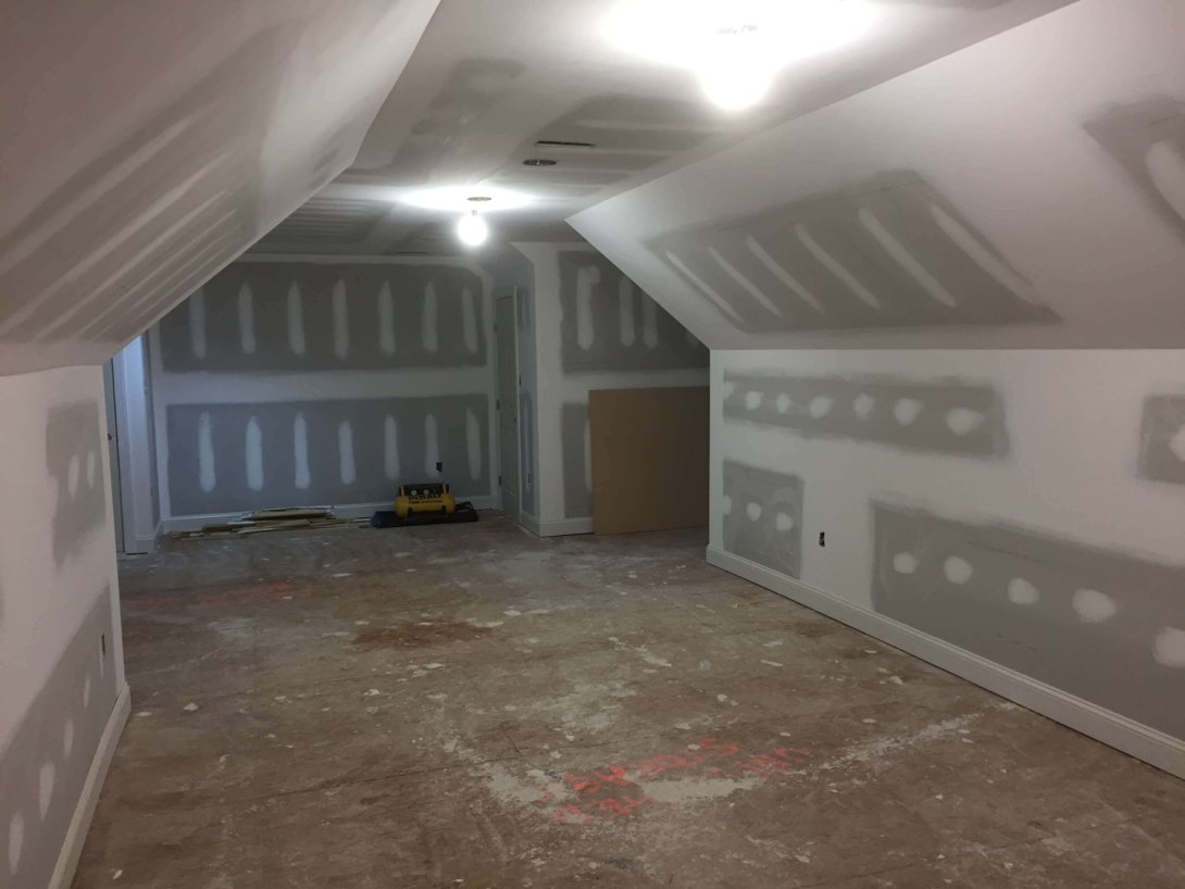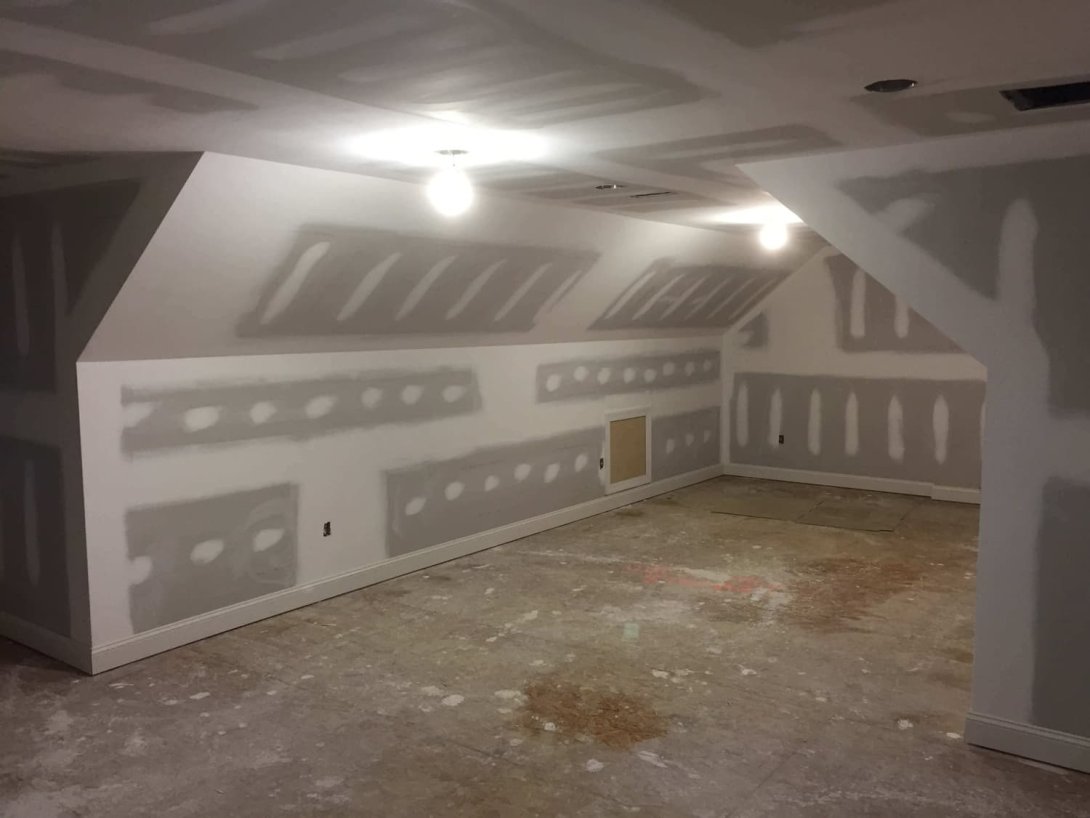 This project is a complete transformation of a vast, unfinished attic into a custom-designed game room with a unique rustic-modern aesthetic. We converted the raw space into a warm and inviting retreat by embracing its architectural character. The sloped knee walls are clad in beautiful, multi-toned reclaimed barn wood, adding incredible texture and a sense of history.