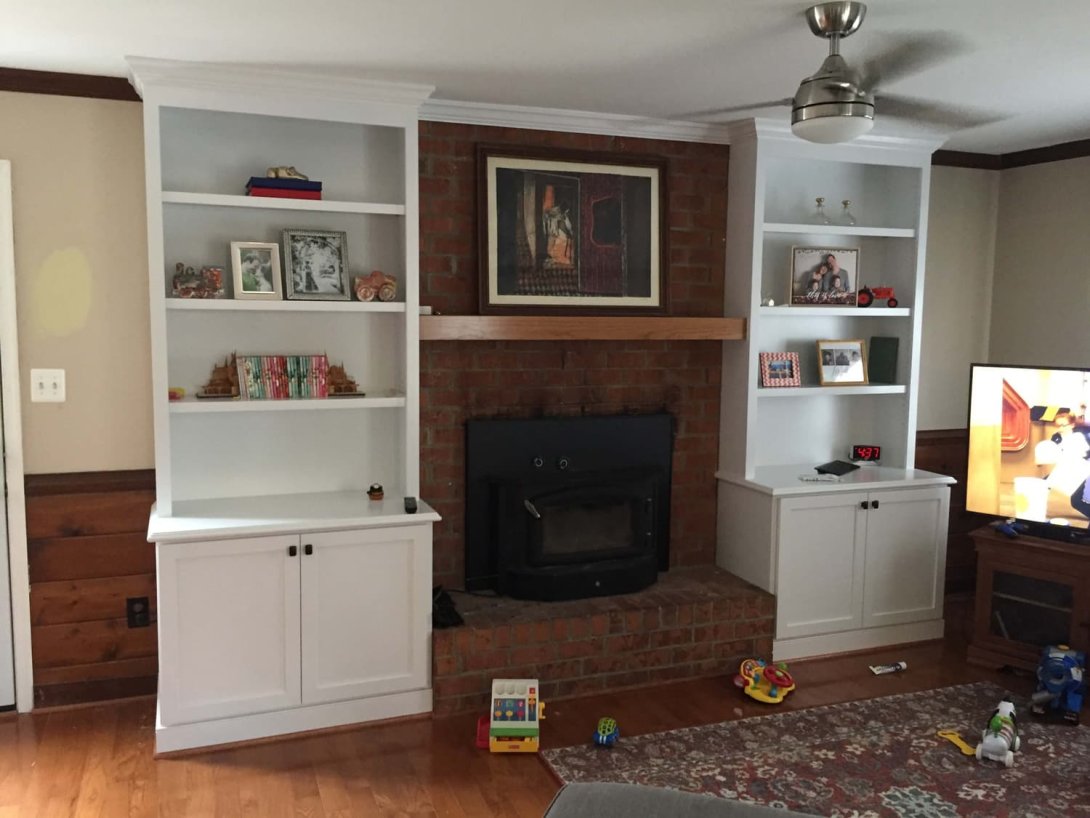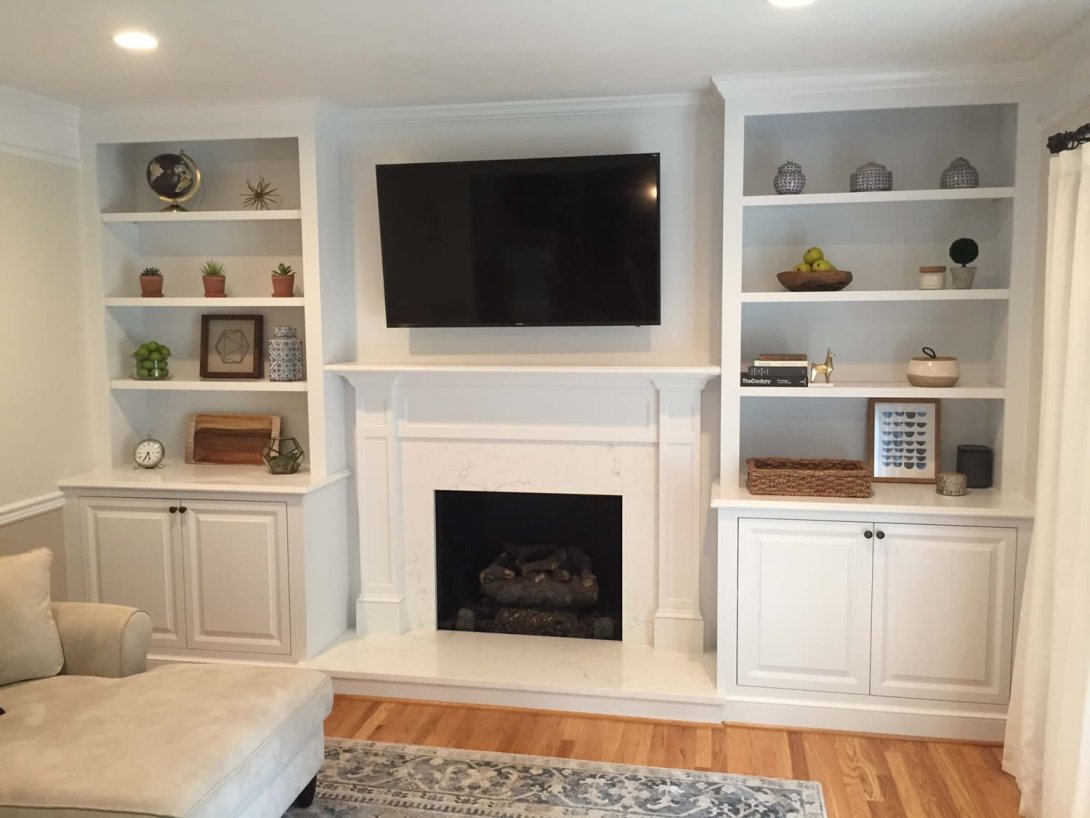 We create elegant fireplace surrounds that turn empty alcoves into polished focal points, seamlessly complementing both traditional brick hearths and contemporary marble designs. Whether it’s an expansive wall-to-wall bookcase for an avid collector or a perfectly balanced media center, each piece provides an ideal blend of open shelving for display and discreet concealed storage. These projects demonstrate how tailored, high-quality cabinetry can elevate a room's style, character, and functionality.