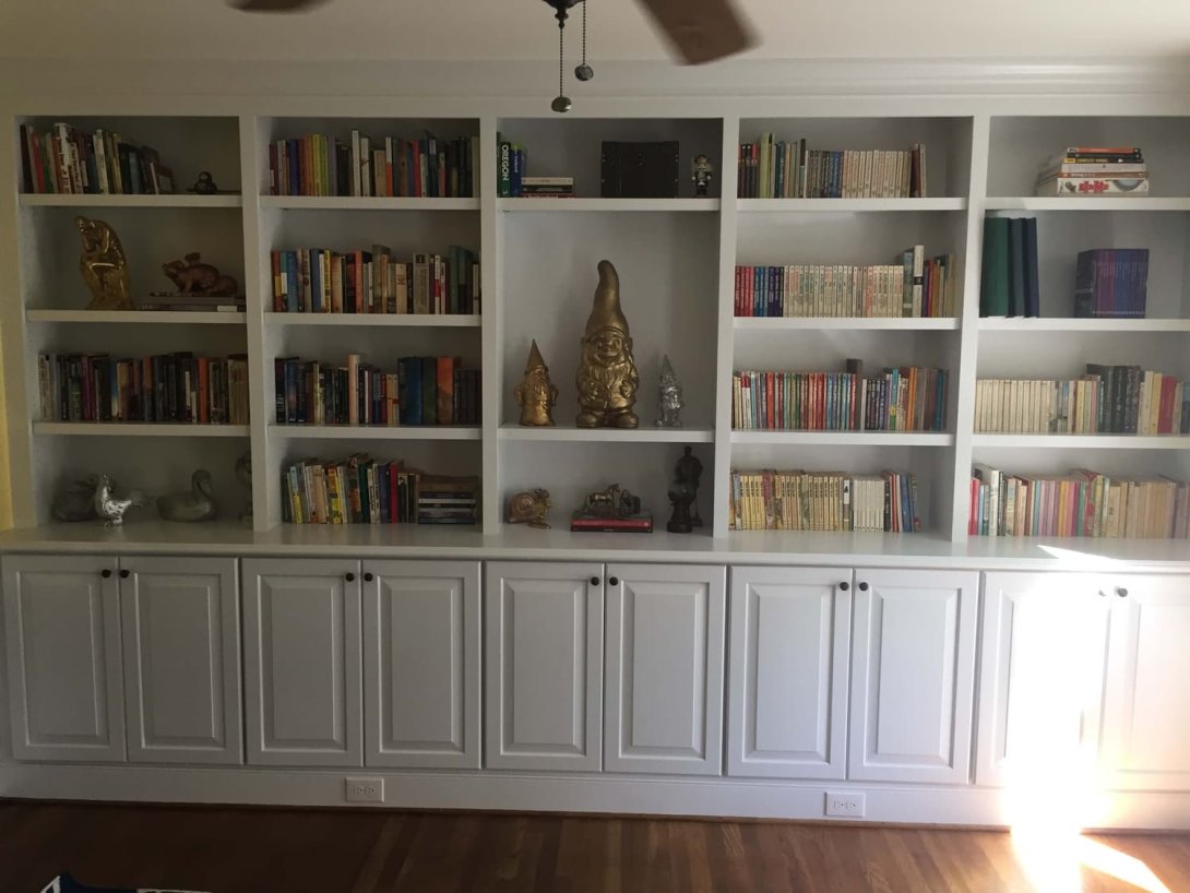 This collection of projects showcases the transformative power of custom bookcases and built-ins, each meticulously designed to fit a home’s unique architecture. Our craftsmanship ranges from grand, two-story library walls, complete with a classic rolling ladder for timeless charm, to sleek, modern entertainment centers with integrated lighting.